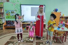 Сегодня в гостях у ребят группы 10 - Зеленодольский музей историко-культурного наследия со сказками народов Поволжья. Были представлены Русская народная одежда, рассказано и показано как пряли пряжу, в какие игры играли в старину. Ребята посмотрели сказку "Сестрица Алёнушка и братец Иванушка", играли в русскую народную игру "Клубочек", увидели Татарский национальный костюм, повторили название одежды, посмотрели мультфильм "Сандугач" ( соловей). Собрали национальный орнамент. Познакомились с Чувашским народным костюмом и постановкой сказки. Увидели Марийский народный костюм, просмотрели марийский мультфильм, "Сереоброзубая Пампалче", играли в Марийскую народну игру "Клубочек". Ребята остались очень довольны и ещё долго делились впечатлениями друг с другом и родителями.