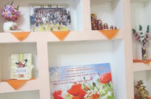 Выставка творческих работ «Подарок для детского сада» к юбилею МБДОУ представлена разнообразными экспонатами. Здесь и топиарий из атласных лент, и коллажи, и работы из бисера, и часы, сделанные своими руками.