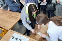 Студенты 407 группы провели мастер-класс по выполнению манипуляций «Сердечно-легочная реанимация» с использованием муляжа, а ответственный секретарь приемной комиссии отвечала на вопросы школьников.