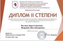 Поздравляем с призовым местом студенток Ватлину Дарью и Видрашку Яну, которые заняли II место в межрегиональной заочной студенческой учебно-информационной конференции "Роль медицинской сестры в предоперационной подготовке планового и экстренного больного". Научный руководитель - преподаватель Галкина Л.Л.