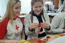 Волонтеры провели первый "Урок добра"- изготовили поздравительные открытки с пожеланиями здоровья, счастья, долгих лет жизни вдовам, труженикам тыла, детям войны. В них выражена благодарность за Великую Победу, за огромный труд, желание жить под мирным небом. -
