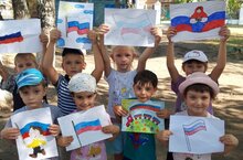 Россия флагы көнен балалар бакчасында тәрбияләнүчеләр 22 августта билгеләп үттеләр. Балалар белделәр, Россия триколоры тарихы гасырлар дәвамында тамырдан чыгып китә-флагның һәр төсе үз символик әһәмияткә ия. Тәрбиячеләр балаларга Россия турында китаплар укыдылар, Россия флагын өйрәнделәр: карадылар һәм рәсем ясадылар, коллектив аппликация ясадылар. Уеннарда балалар башка илләрнең флаглары арасында Россия флагын аерырга һәм табарга өйрәнделәр.