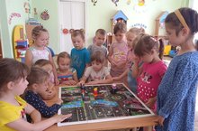 16 августа 2023 года в средней группе "Пчелки", прошёл тематический день в честь Дня малинового варенья. Дети узнали о целебных свойствах яркой, красивой, ароматной и очень полезной ягоды - малины, и способами её сохранения путём заготовок на холодную зиму, ведь из неё можно сварить варенье, посушить и заморозить. Ребята сами "сварили варенье", нарисовав ягодки в пустых баночках, а ещё водили хоровод, играли в игру " У медведя во бору".2023 елның 16 августында "Пчелки" урта төркемендә кызгылт сары Варенье көне хөрмәтенә тематик көн узды. Балалар якты, матур, хуш исле һәм бик файдалы малина җиләгенең дәвалау үзлекләре турында һәм аны салкын кышка әзерләү юлы белән саклау ысуллары турында белгәннәр, чөнки аннан варенье пешерергә, киптерергә һәм туңдырырга мөмкин. Балалар үзләре варенье пешергәннәр, җиләкләрне буш банкаларга буяганнар, шулай ук хорвод йөрткәннәр, У медведя в бору уены уйнаганнар.