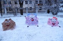 Новый год - это всегда - ожидание сказки, чуда. Каждый ребенок ждет чудес, волшебства и исполнения желаний в новый год. И мы, взрослые считаем своим долгом создать условия, чтобы ребенок продолжал верить в чудо. Сотрудники детского сада захотели создать новогоднее настроение для детей, родителей и гостей нашего детского сада. И мы с воспитателями решили создать из снега на участке ДОУ персонажей известного мультика «Смешарики». Один из персонажей очень символичен – Бараш, а мы все знаем, что символом 2015 года по восточному календарю является Коза или Овца. Вот что у нас получилось!
