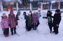 Зима – это прекрасный сезон для увлекательных игр на свежем воздухе. Зимних забав и развлечений хоть отбавляй! Они не только доставляют детям радость, но и приносят пользу для здоровья! Улицы засыпало снегом, и малыши в детском саду с удовольствием выходят на зимнюю прогулку. Ведь так хочется поиграть в игры со снегом, и конечно слепить веселого снеговика, чтобы украсить участок для прогулок. Дети получили кучу положительных эмоций от совместной деятельности, и остались довольны своим результатом!