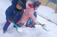 Лучшая погода для строительства горки, когда за окном -5… -10 °C, — говорит специалист по ледовым городкам. — В -15 °C и ниже снег будет очень быстро застывать, мы не сможем превратить его в нужную нам поверхность, а при слишком высокой температуре он, наоборот, застывать не будет. Что касается самого снега, хорошо, когда он свежевыпавший. Но для строительства подходит не любой снег, а тот, что выпал в тёплую зимнюю погоду, крупными хлопьями. Такой снег очень мягкий, как вата, он прекрасно впитывает в себя воду. Снег, больше похожий на крупу, воду не впитывает, лепить из него невозможно. На нашей детской площадке родители уже собрали основу для горки — набросали снег, утоптали, дали отстояться и немного пролили её водой. Наша задача — довести этот полуфабрикат до совершенства, ведь впереди ещё минимум три месяца зимней погоды и снежных забав.
