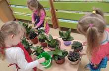 Создать живую, домашнюю атмосферу в детском саду помогают комнатные цветы и растения. Дети любят ухаживать, поливать растения в группе детского сада, протирать крупные растения влажной тряпочкой, рыхлить почву и опрыскивать листья. Такие элементарные трудовые поручения воспитывают интерес к комнатным растениям и желание ухаживать за ними. Так, педагоги начиная с младшей группы начинают обучение детей простейшим навыкам ухода за комнатными растениями: поливать, рыхлить и опрыскивать, проводя ряд занятий познавательного характера и в целях воспитательной работы, направленной на привитие любви, заботы и гуманного отношения к природе.