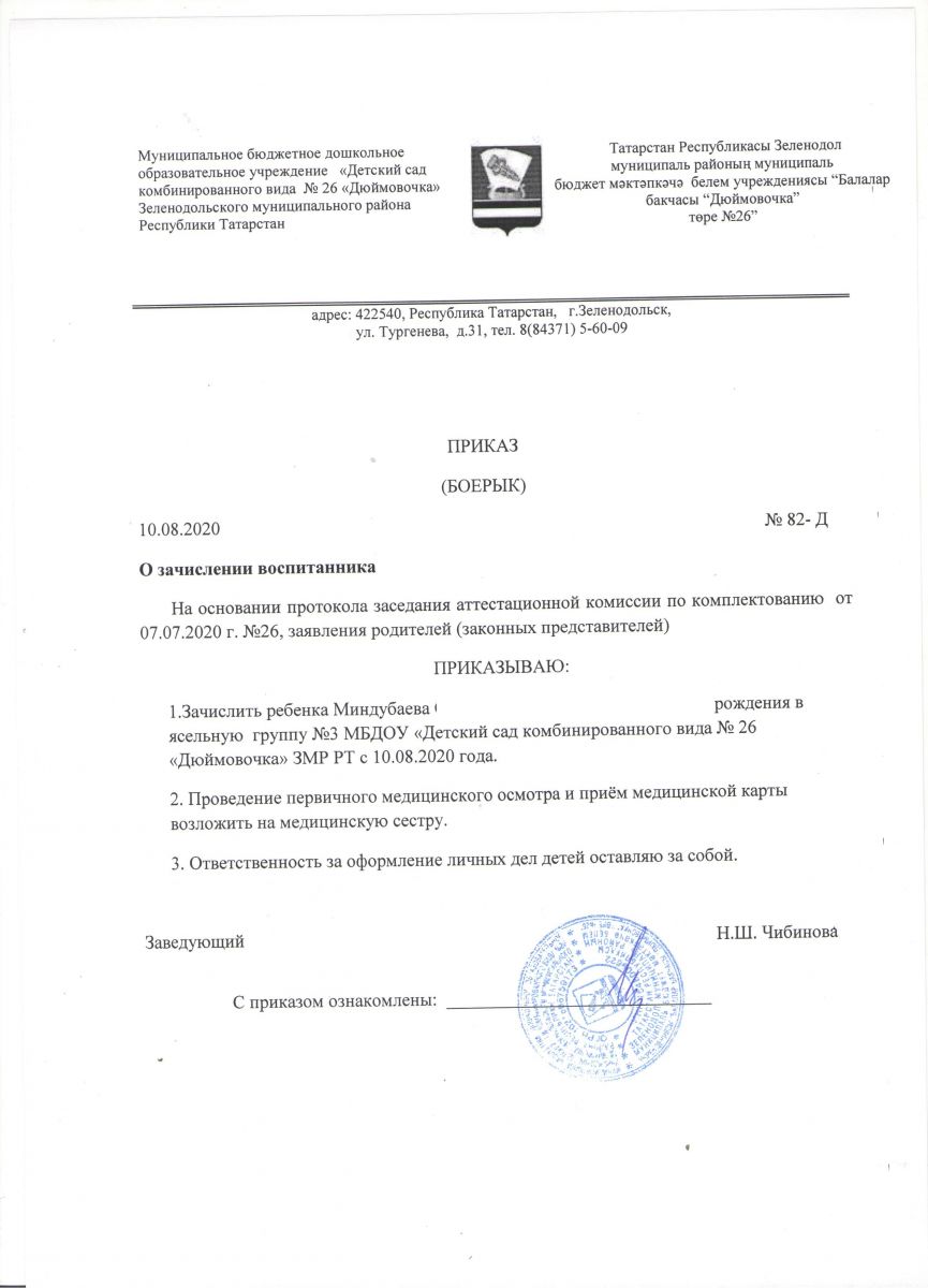 | Короткое название: | МБДОУ «Детский сад комбинированного вида №26 «Дюймовочка» ЗМР РТ» |