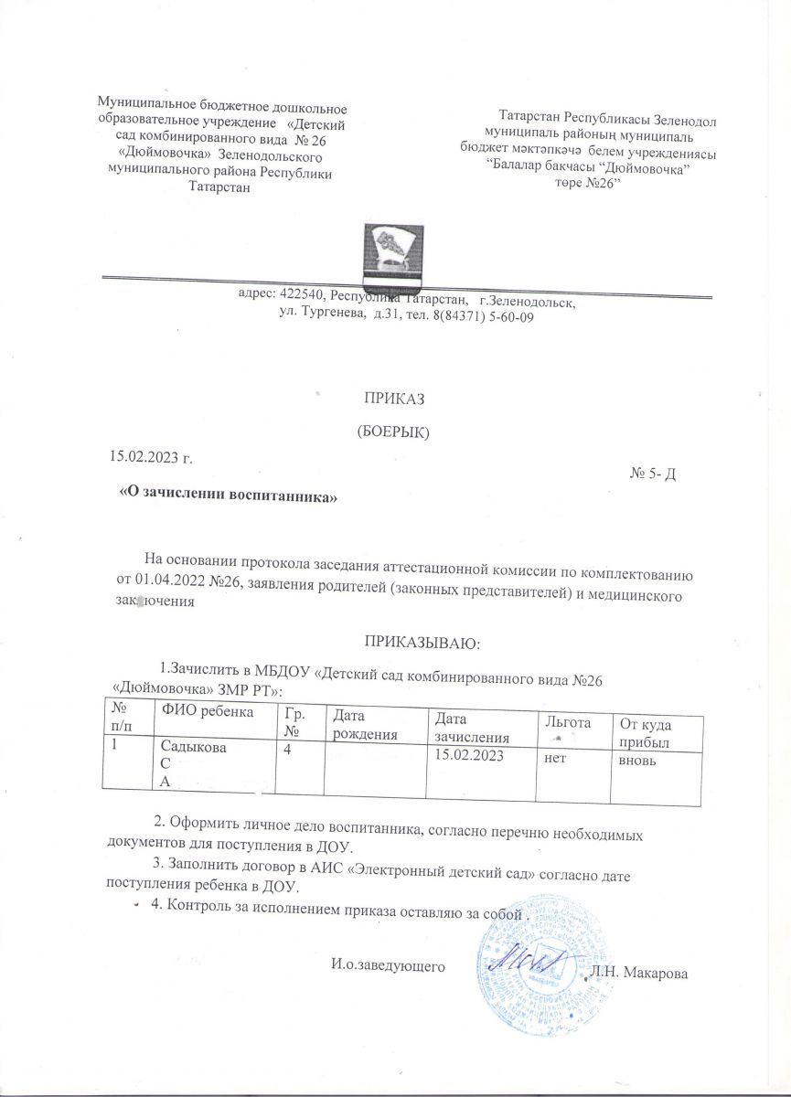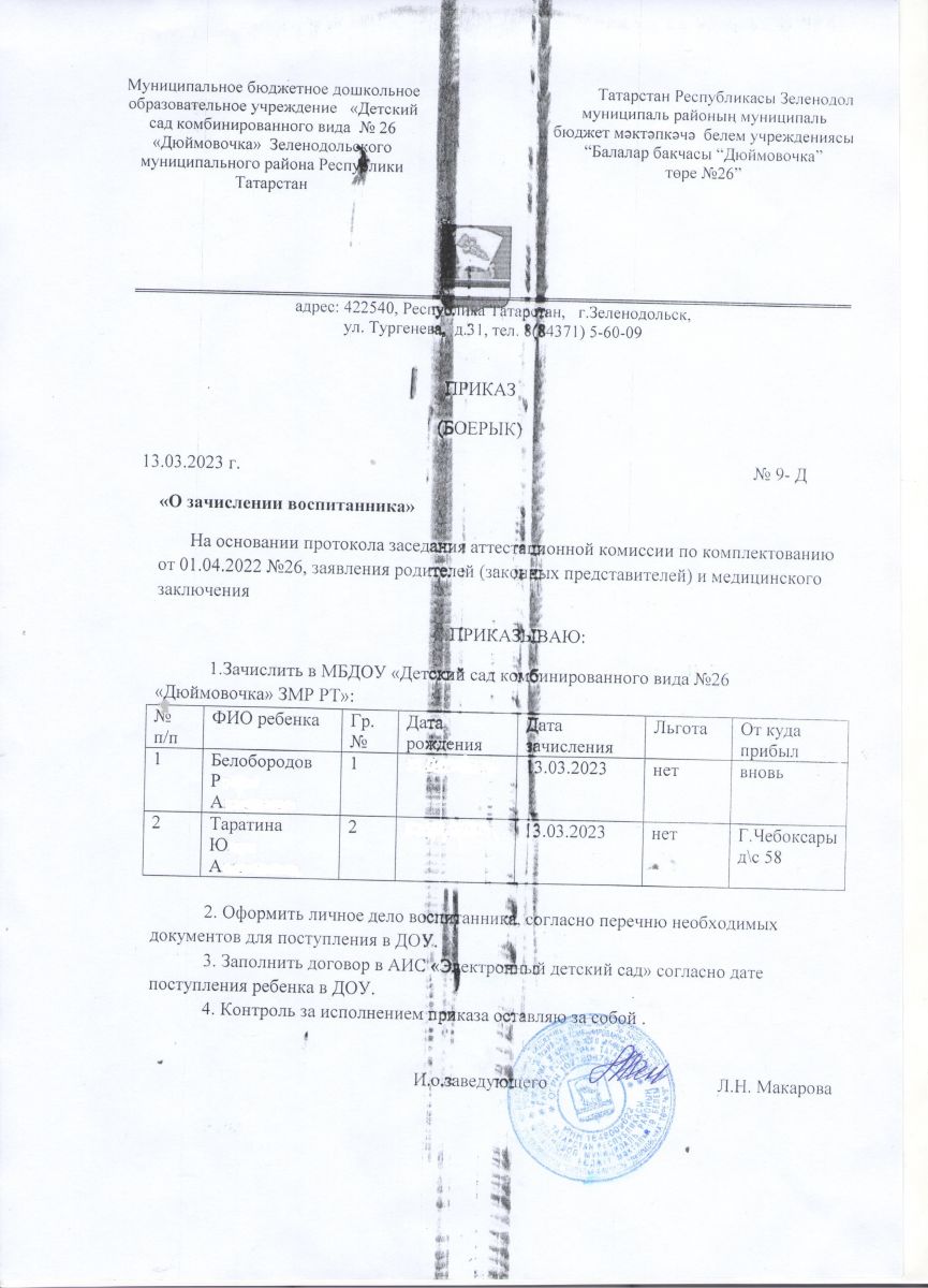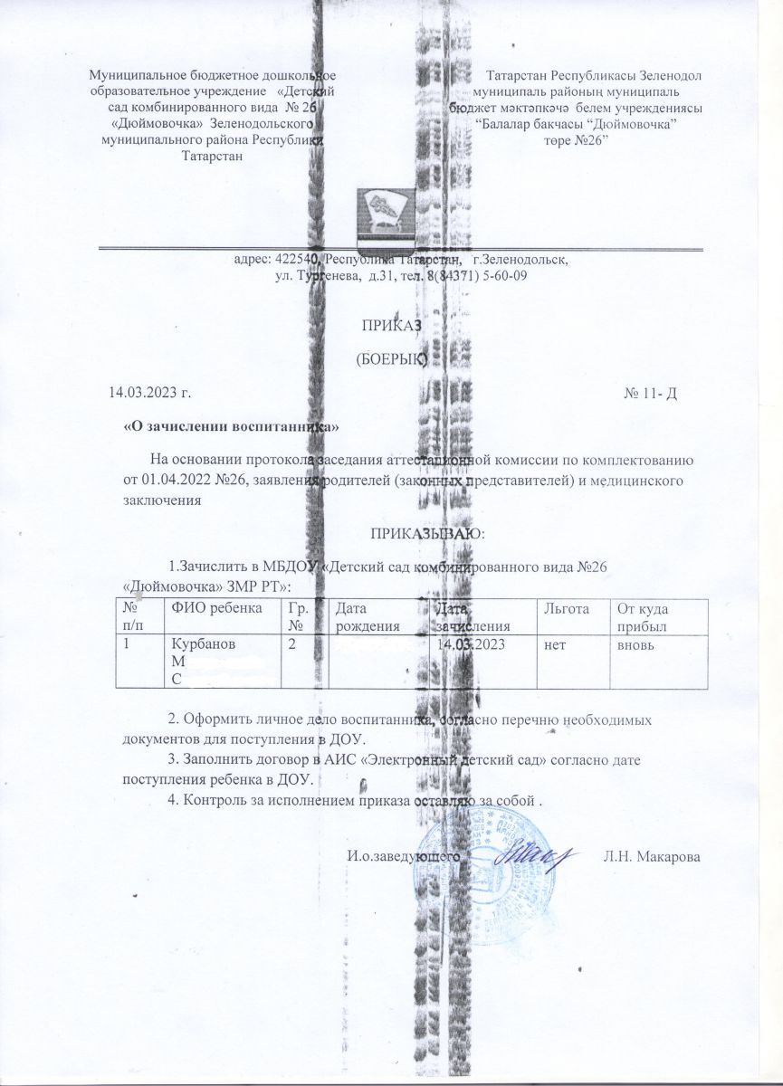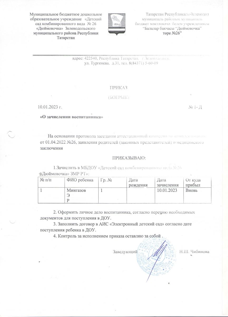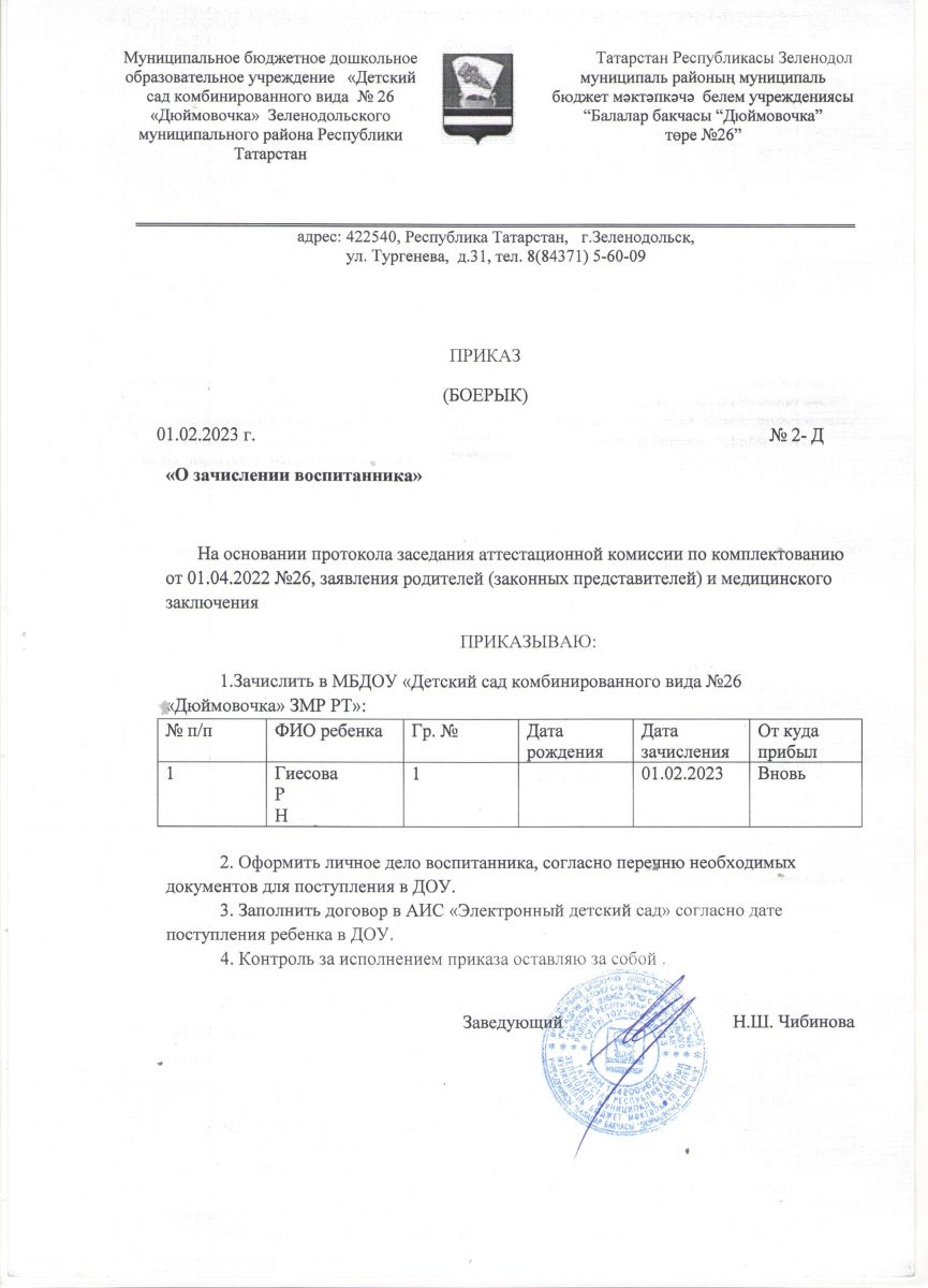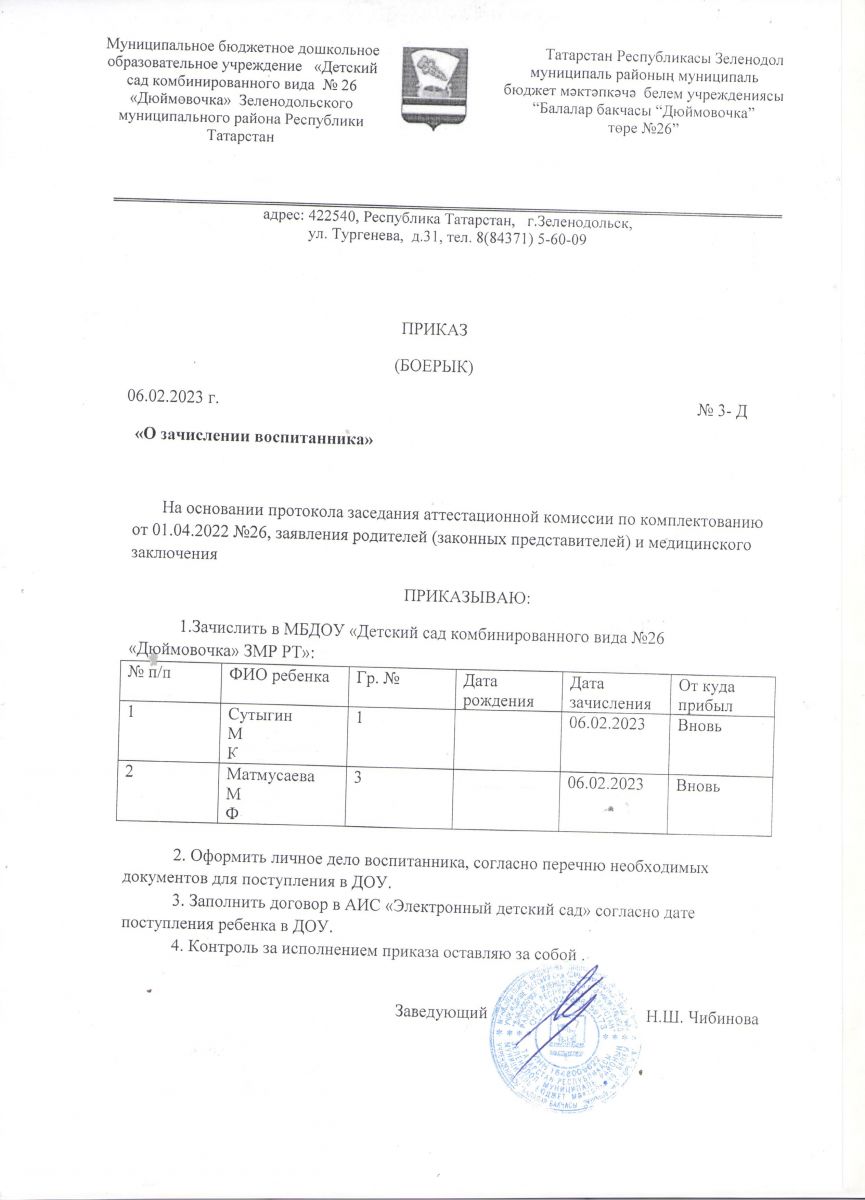 Короткое название: МБДОУ «Детский сад комбинированного вида №26 «Дюймовочка» ЗМР РТ»