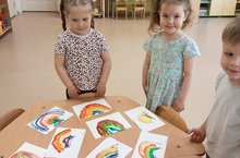 Радуга - одно из красивейших явлений природы, которому были посвящены игровые мероприятия в этот день. Дети совместно с воспитателем узнали много нового и интересного о цветах и о радуге - дуге, играли в дидактические игры "Соберём радугу", "найди цвета радуги в тебе и во мне". Учились рисовать на темы "Радуга", "Радужные истории", участвовали в подвижных играх: "Солнышко и дождик", "Встань на свое место", вспомнили радужную считалку. Звучали песни, стих, загадки о радуге и красках, о лете. Веселые игры сопровождались весь день. День получился по настоящему радостный, весёлый и радужный.