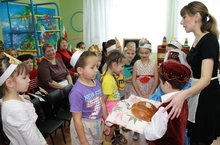 Второй день открытых мероприятий начался со первой младшей группы, где Л.А. Сенчихина с малышами сходили в гости к снеговику, А.Ф. Миннуллина на своем занятии познакомила детей с жизнью кошки. В средней группе Г.Р. Хасанова провела исследовательскую работу по свойствам песка. Воспитатель подготовительной группы с национальным уклоном Г.И. Тазутдинова с детьми проанализировала “рождение” хлеба и испекли булочки.