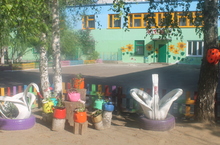 Красивая территория 14.05.2013 Весь апрель и май трудились сотрудники и родители на территории детского сада. Придумывали, мастерили, красили малые формы для игр детей и просто для красоты, сажали цветы. В результате детский сад преобразился.