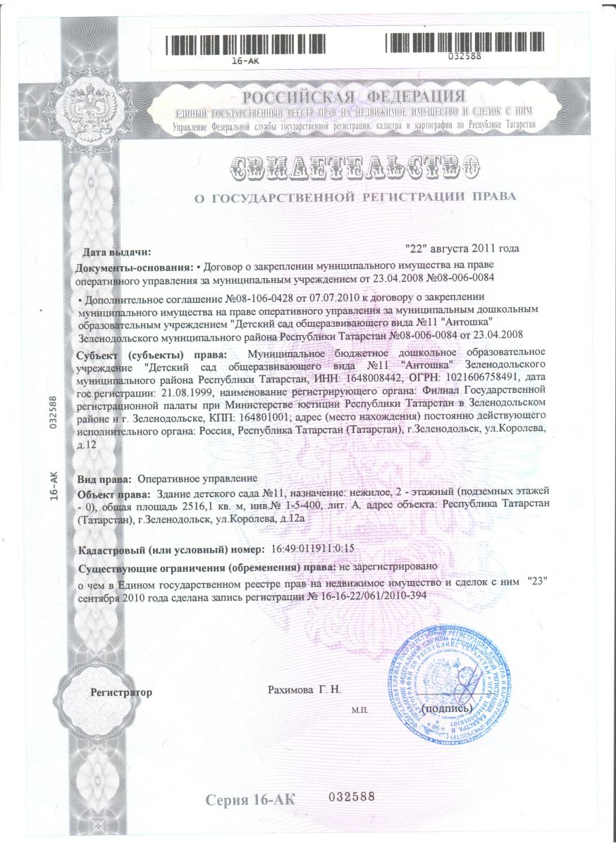 Короткое название: МБДОУ "Детский сад общеразвивающего вида №11 "Антошка" ЗМР РТ