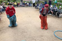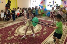 Сегодня в нашем детском саду прошел традиционный фольклорный праздник «Сабантуй». Дети прочли стихи о празднике и любимых видах состязаний.Ребята соревновались в силе, ловкости и выносливости, поиграли в игры соревновательного характера: «Бой мешками», «Бег в мешках», «Кто быстрей донесёт яйцо в ложке», «Разбей горшок», «Перетяни канат». Особенно весело прошел бой мешками. Воспитанники водили хоровод и танцевали под национальную музыку.Безнең республикада иң мөһим һәм яраткан бәйрәмнәрнең берсе - Сабаной (сукалау бәйрәме). Sabantuy - кыр һәм чәчү эшләренең бетүенең шат бәйрәме, бу вакыт эчендә милли җырлар, биюләр, комик ярышлар һәм спорт ярышлары туктамый. Бүген безнең балалар бакчасында традицион фольклор бәйрәме "Сабаной" булды. Балалар бәйрәм һәм яраткан ярыш төрләре турында шигырьләр укыйлар. Егетләр көч, декстерлык һәм чыдамлык белән көч сынаштылар, көндәш уеннар уйнадылар: "Капчыклар белән көрәш", "Капчыкларда йөгерү", "Кем кашыкка йомырка тиз китерәчәк" , "Чүлмәкне сындыр", "Арканны тарт". Капчык көрәше аеруча күңелле булды. Укучылар түгәрәк бию алып бардылар һәм милли музыкага биеделәр.