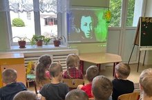 6 июньдә А.С.Пушкинның туган көне һәм Бөтендөнья рус теле көне. Бүген төркемнәрдә бөек рус шагыйре турында әңгәмәләр булды: егетләр таныш шигырьләрне, әкиятләрне искә төшерделәр, үзләре өчен яңа әсәрләр белән таныштылар, рус теленең матурлыгы һәм әһәмияте турында сөйләштеләр. "Астериск" төркемендә алар "Лукоморида, яшел имән .." дип кабатладылар, "Deadлгән принцесса һәм җиде богатир әкияте" белән таныштылар, әкият геройларын рәсем ясарга һәм буяуга ошадылар. Пушкин көнендә Удальцы төркеме егетләре рус шагыйре әсәрләрен искә төшерделәр, патша Солтан әкиятенең фрагментын сәхнәләштерделәр. Без Николай Андреевич Римский-Корсаковның "Өч могҗиза" әсәре белән "патша Солтан әкияте" операсыннан таныштык.