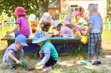 (М.Ершова)Солнце, воздух и вода - наши верные друзья! Одним из любимых занятий детей на прогулке является игра в песочнице. Ребята всех возрастных групп нашего детского сада с удовольствием делают куличики, сказочные постройки, дороги. Игры с песком не только доставляют детям удовольствие, но и знакомят с окружающим миром. В процессе игры у ребят развивается усидчивость, глазомер и мелкая моторика рук. Малыши учатся играть рядом с другими ребятами, что необходимо для развития. Игры с песком благотворно влияют на психику малышей, снимают напряжение, гасят негативные эмоции .