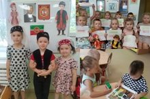30 августа - особое место занимает этот день в календаре знаменательных дат Татарстана. Каждый год жители Татарстана торжественно отмечают свой праздник - День образования Республики Татарстан. Сегодня, в преддверии праздника в детском саду воспитатели провели с ребятами беседы о нашей республике. Рассматривая флаг Татарстана, дети назвали его цвета и объясняли, что они означают. Внимание ребят привлек белый барс на гербе республики. Крылатый белый барс означает благородство и чистоту помыслов. Красное солнце, на фоне которого изображён зверь, символизирует доброе знамение, счастье и успех. Так же ребята полюбовались на татарские национальные костюмы и примерили их, вспомнили татарские народные сказки.