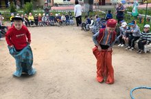 Сегодня в нашем детском саду прошел традиционный фольклорный праздник «Сабантуй». Дети прочли стихи о празднике и любимых видах состязаний.Ребята соревновались в силе, ловкости и выносливости, поиграли в игры соревновательного характера: «Бой мешками», «Бег в мешках», «Кто быстрей донесёт яйцо в ложке», «Разбей горшок», «Перетяни канат». Особенно весело прошел бой мешками. Воспитанники водили хоровод и танцевали под национальную музыку. / Безнең республикада иң мөһим һәм яраткан бәйрәмнәрнең берсе - Сабаной (сукалау бәйрәме). Sabantuy - кыр һәм чәчү эшләренең бетүенең шат бәйрәме, бу вакыт эчендә милли җырлар, биюләр, комик ярышлар һәм спорт ярышлары туктамый. Бүген безнең балалар бакчасында традицион фольклор бәйрәме "Сабаной" булды. Балалар бәйрәм һәм яраткан ярыш төрләре турында шигырьләр укыйлар. Егетләр көч, декстерлык һәм чыдамлык белән көч сынаштылар, көндәш уеннар уйнадылар: "Капчыклар белән көрәш", "Капчыкларда йөгерү", "Кем кашыкка йомырка тиз китерәчәк" , "Чүлмәкне сындыр", "Арканны тарт". Капчык көрәше аеруча күңелле булды. Укучылар түгәрәк бию алып бардылар һәм милли музыкага биеделәр. -