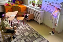 Лилия Зульфатовна подробно рассказала о работе врача отоларинголога и офтальмолога. После беседы дети обыграли игровую ситуацию "в кабинете у врача", где примерили на себя роли докторов и пациентов, тем самым они подробнее ознакомились с профессией , узнали как проводит осмотр доктор. Дети вели себя хорошо, ведь они знают что в кабинете у врача нельзя мешать ему заниматься осмотром. Занятие прошло отлично, а ребята закрепили знания о своём здоровье! /// "Сәламәт булырга телисез икән!" - өлкән төркемдә тышкы дөнья белән танышу дәресләре өчен тема. Уйнаганда, укытучы Лилия Зульфатовна клиника үрнәген кулланып, җәмәгать урыннарында балаларның тәртип кагыйдәләре турындагы идеяларын ачыкларга һәм киңәйтергә тырышты; балаларга кеше тәне турында идея бирү; сәламәтлек турында кайгырту кирәклеге турында. "Клиникага" кергәч, шкаф бүлмәсендәге балалар аларга әдәпле рәхмәт әйтергә онытмыйча, номер алдылар. Лилия Зульфатовна табиб эше турында сөйләде. "Табиб кабинеты" ситуациясендәге балалар табиблар һәм пациентлар ролен сынап карадылар, шуның белән һөнәр белән яхшырак таныштылар һәм табибның экспертиза үткәрүен өйрәнделәр. -
