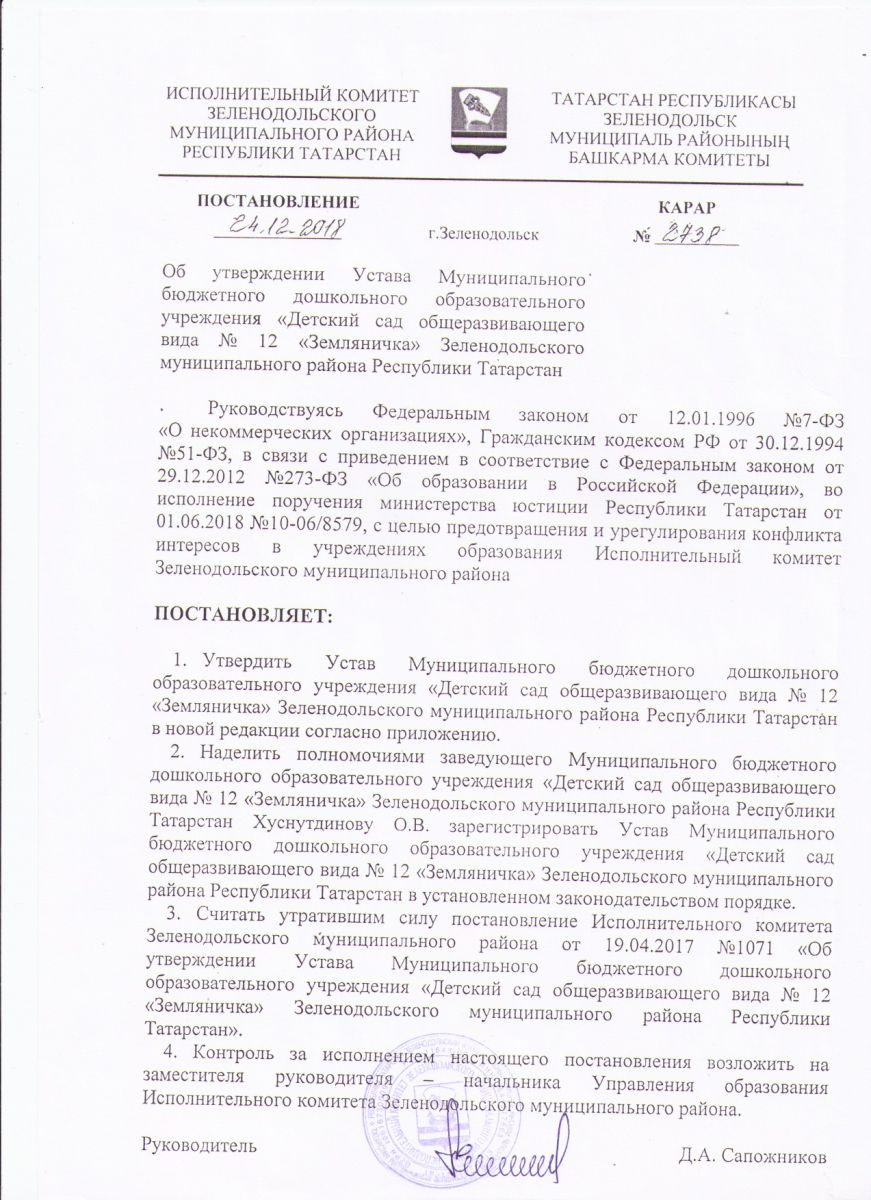 Муниципальное бюджетное дошкольное образовательное учреждение "Детский сад общеразвивающего вида №12 "Земляничка" Зеленодольского муниципального района Республики Татарстан/Татарстан Республикасы Зеленодол муниципаль районының «Гомуми төрдәге № 12 «Каен җиләге» балалар бакчасы» муниципаль мәктәпкәчә белем бирү бюджет учреждениесе»