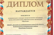 Тәрбияләнүчеләр коллективын "Премьера"мәктәпкәчә белем бирү оешмалары балалары арасында театрлаштырылган спектакльләрнең муниципаль конкурсында җиңүләре белән котлыйбыз.