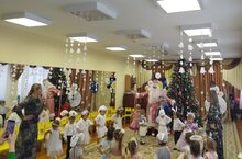 Во время новогоднего представления царила атмосфера праздника, волшебства, чувствовался позитивный эмоциональный настрой воспитанников.Күптән көтелгән иртәнге кичәләр атнагы килде. Бөтен балалар бакчасы әкияткә чумды! Әзерлек төркеме тәрбияләнүчеләре бер мизгелдә әкият персонажларына әверелделәр. Яңа ел әкиятендә кемнәр генә булмаган: йолдызлар, минуткалар, Василиса Премудрая,Дюймовочка,Кар кызы,Золушка, Буратино,Мальвина, Кызыл башлык, юлбасарлар һәм башка бик күпләр.Иртәнге геройлар үзләрен яхшы артистлар итеп күрсәтәләр, үзләренең бөтен иҗади осталыкларын, артистлыкларын, ачуларын күрсәтәләр. Яңа ел тамашасы вакытында бәйрәм атмосферасы, тылсым хөкем сөрә, тәрбияләнүчеләрнең уңай эмоциональ кәефе сизелә.