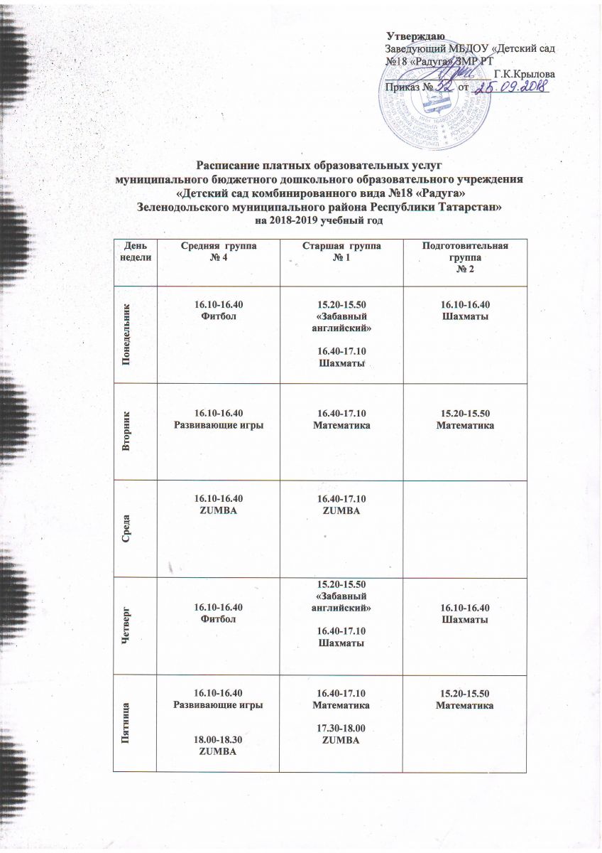 Приказ об оказании платных образовательных услуг в 2018-2019 учебном году