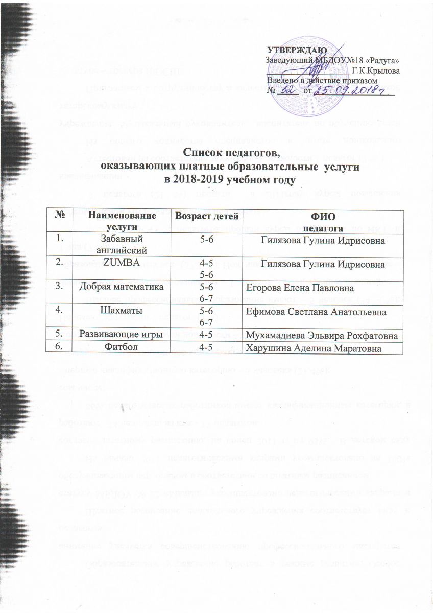Список педагогов, оказывающих платные образовательные услуги