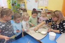 "Зёздочки" төркеме тематик көн үткәрде - "Беренче кар бөртеге көне". Әңгәмә һәм презентация карау барышында балалар күп кенә яңа һәм кызыклы яңалыклар белделәр һәм кызыксындырган сорауларга җаваплар алдылар: кар бөртекләре кайдан алына, ә кар бөртеге охшаш буламы, ни өчен алар ак? Ә аннары аерым кызыксыну белән төркемдә тәрәзәләрне бизәгән кәгазьдән кар бөртекләрен кисеп алдылар.