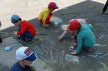 Традиционно в день защиты детей в саду проводятся веселые игры, рисунки на асфальте, шоу воздушных шариков. В общем царит смех и веселье!