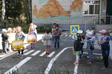 В рамках профилактических мероприятий "Внимание - дети!" дети младших групп знакомились со светофором, а старшие воспитанники закрепляли свои знания о правилах дорожного движения, дорожных знаках, безопасности на дороге в сюжетно-ролевой игре на площадке с дорожной разметкой.