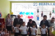 Сегодня прошло спортивно-музыкальное мероприятие «День защитника Отечества» с участием родителей. Дети подготовительных групп №4 и №5 вместе со своими папами и дедушками участвовали в аттракционах и играх, соревновались в меткости, ловкости и быстроте; пели песни, а папы проявили артистизм в танцах. Потом взрослые и дети вместе пускали бумажные самолетики. Затем дети подарили папам подарки, сделанные своими руками.