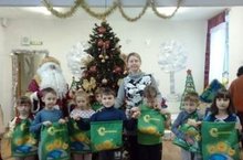Сегодня на прощании с елкой все выпускники, наши будущие первоклашки, получили в подарок от Деда Мороза мешочки для обуви с надписью "Любимый Зеленодольск"