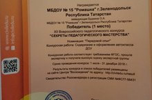 | Короткое название: | МБДОУ "Детский сад комбинированного вида №15 "Ромашка" ЗМР РТ" |