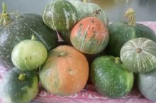 Весной мы посадили на грядках нашего сада семена тыквы. Посмотрите, какой замечательный урожай мы собрали. -