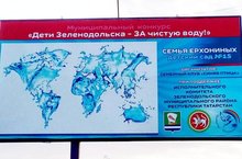 На улице города появился банер с плакатом- победителем конкурса "Дети Зеленодольска- за чистую воду" семьи Ерхониных, проводимым ЧДОУ "Синяя птица", при поддержке исполнительного комитета ЗМР.