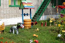 Ежегодно територия детского сада одевается в цветочный наряд, и на клумбах вновь поселяются веселые фигурки забавных человечков, гномов, иживотных, сделанных руками педагогов и родителей. В этом году на территории поспела грядка клубники и уже появились первые тыковки. То ли еще будет!