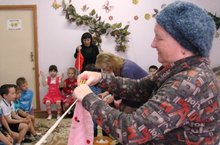 1 октября 2014года в детском саду прошёл праздник, посвящённый Дню пожилого человека. На него были приглашены дедушки и бабушки воспитанников групп старшего возраста. Они с удовольствием участвовали в различных играх и аттракционах. Дети исполнили песни и танцы, в стихах поздравляли своих дедушек и бабушек. На празднике всех веселила старушка Шапокляк. Развлечение закончилось совместным танцем детей и взрослых, вручением подарков, сделанных руками детей.