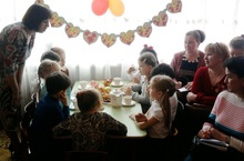 13 мая в нашем детском саду состоялась встреча с ветеранами ВОВ и тружениками тыла. Дети и педагоги поздравили ветеранов и поблагодарили их за Победу. Затем для ветеранов был показан концерт, где не только выступали воспитанники и педагоги, но и вместе с ветеранами пели песни военных лет. И, конечно, гостей угостили ароматным чаем, сладостями.