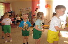 22 мая прошло спортивное развлечение в средней группе «В мире сказок». Все эстафеты проходили по сказкам :«Колобок», «Три медведя», «Маша и медведь, Курочка ряба и т. д. Ребята также отгадывали загадки, пели, танцевали.