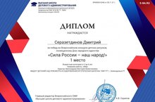 Поздравляем воспитанника Серазетдинова Дмитрия,занявшего 1 место во Всероссийском конкурсе,посвященного Дню народного единства "Сила России-наш народ!"