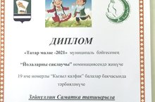 Туган телләр һәм Халык бердәмлеге елы кысаларында "Татар-кече-2021" республика конкурсында "халык традицияләрен саклаучы"номинациясендә җиңүче Зәйнуллин Саматны һәм педагоглар Мөхәммәтҗанова Г.Ф., Ярмөхәммәтова Н. М. ны котлыйбыз.
