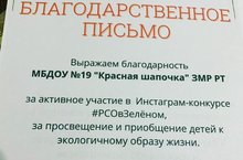 Безнең балалар бакчасы " экологик Яшел Үзән "экологик конкурсында актив катнашты."Сентябрьдән балалар бакчасында акция старт алды һәм ата-аналар батарейкалар, муллатура һәм яхшы капкачлар җыю буенча актив катнаштылар.Ярдәмегез өчен рәхмәт!!!