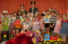 В группе № 2 прошло тематическое развлечение по ПДД. В гости к детям пожаловали Инспектор ГИБДД и Карлсон.