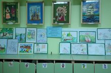 На первом этаже организована выставка детских рисунков по произведениям татарских поэтов и писателей. Участники - дети подготовительной группы. Молодцы!/ Беренче катта татар шагыйрьләре һәм язучыларының әсәрләре буенча балалар рәсемнәре күргәзмәсе оештырылган. Катнашучылар-әзерлек төркеме балалары. Афәрин!