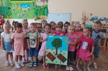 В детском саду прошла неделя творчества. Дети проявили свои творческие способности в разных видах изобразительной деятельности, выполнив коллективные работы на тему "Лето красное". Дети второй младшей группы сделали работу в технике пластилинография "Во саду ли, в огороде". /Балалар бакчасында иҗат атналыгы узды. Балалар, "Кызыл җәй" темасына коллектив эшләр башкарып, рәсем эшчәнлегенең төрле төрләрендә үзләренең иҗади сәләтләрен күрсәттеләр. Икенче кечкенәләр төркеме балалары "бакчада, бакчада бармы?" дигән пластилинография техникасы буенча эш ясадылар.