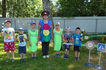 В учреждении прошло развлечение на свежем воздухе "Зеленый огонек", посвященное профилактике правонарушений на дорогах. Дети отгадывали загадки, обыгрывали опасные ситуации на дорогах, соревновались в знании правил дорожного движения. / Учреждениедә саф һавада юлларда хокук бозуларны кисәтүгә багышланган "Яшел ут" дигән күңел ачу чарасы узды. Балалар табышмакларга җавап бирделәр, юллардагы куркыныч ситуацияләрне җиңеп чыктылар, юл хәрәкәте кагыйдәләрен белүдә ярыштылар.