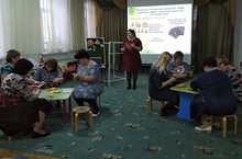 Для педагогов детского сада воспитатель Хисамова Э.И. провела мастер-класс по изготовлению предметно-развивающей среды по театрализованной деятельности. Воспитатели с большим интересом обменивались опытом изготовления разнообразных видов театров и участвовали в изготовлении магнитного театра.