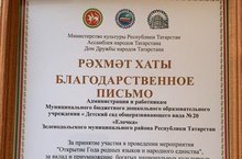 Уку дәресләренең, класстан тыш чараларның һәм проектларның авторлык методик эшләнмәләренең " Хезмәт кешесенә дан!" исемле республика конкурсы нәтиҗәләре буенча "Туган ягымның халык һөнәрләре һәм кәсепләре" номинациясендә 3 дәрәҗә дипломына 4 нче төркем тәрбиячеләре Макарова Л.В. һәм Дәүләтхуҗина Г. И. лаек булды. Котлыйбыз!
