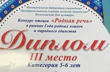 В Васильевском доме культуры состоялся конкурс чтецов "Родная речь", посвященный Году родных языков и народного единства в Республике Татарстан. Поздравляем Елизавету С., занявшую 3 место. Благодарим Самиру У. за активное участие.